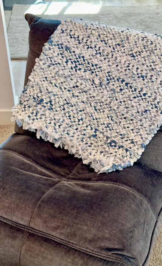 Hand Woven Peg Loom Rug. Red White And Blue Patriotic Vibes