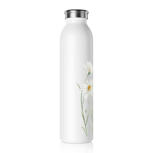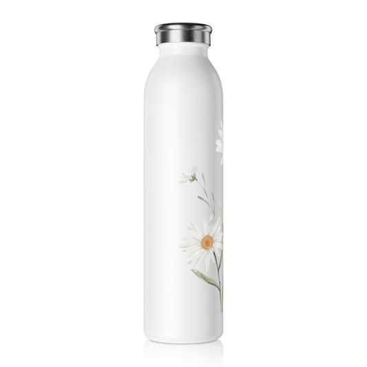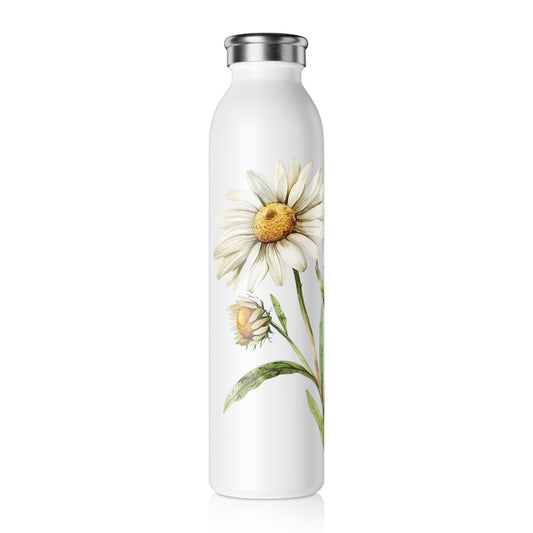 Floral Slim Water Bottle, Eco-Friendly Hydration, Summer Gift, Trendy Drinkware, Daisy Design, Outdoor Adventures