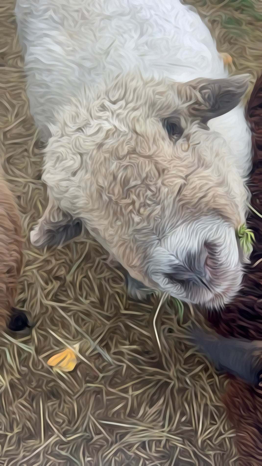 She came to our farm from the same place Maisey did. They were both born in the Spring of 2020. Penelope was approx. 4 months old when she came to live with us. She is a Roma Dale cross. Her wool is also lovely with a lot of elasticity with a soft, silky type texture.